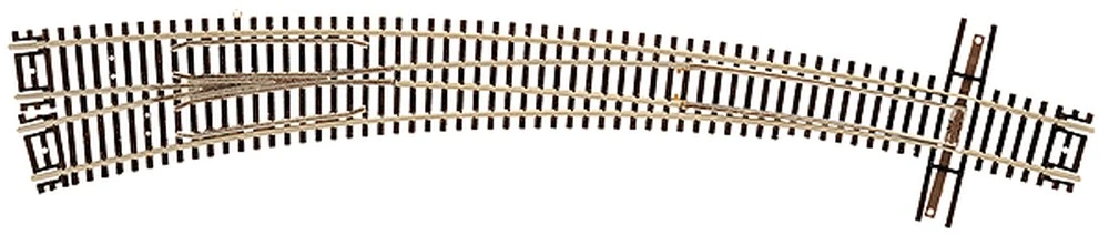 Atlas N Scale Code 55 Curved Turnouts feature nickel-silver rail with molded brown ties. The turnouts have a metal frog that can be powered and a throw bar extending to both sides of the points. This track is part of the Atlas Code 55 track line and has same reliability and durability as Atlas Code 80 track, but with a more realistic rail and tie profile to make it look more true-to-life. Code 55 track has nickel-silver rail, finer brown ties and a smaller, more realistic rail cross section than traditional N Scale Atlas track. Code 55 curved turnouts are part of the Atlas N Scale Code 80 and Code 55 track line.