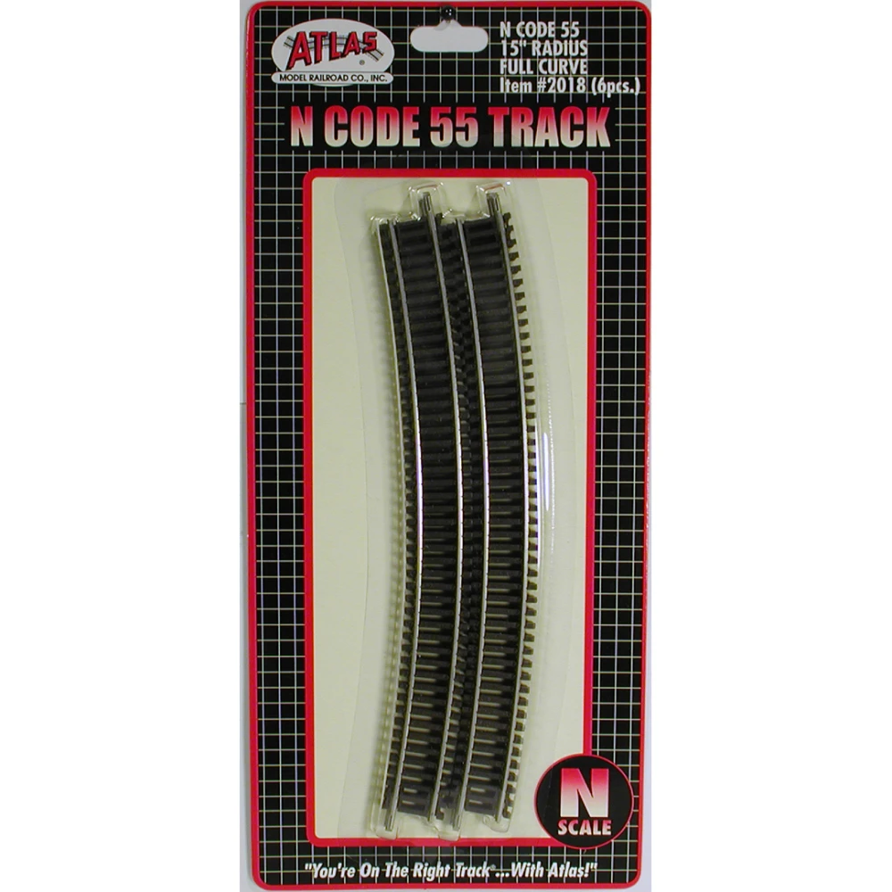 Atlas N Scale Code 55 Straight and Curved Snap Track features nickel silver rail and injection-molded brown ties with wood grain detail. It has the same reliability and durability as popular Code 80 track, but with some slight differences that make it more prototypical. Code 55 track is characterized by having finer brown ties and smaller rail than traditional Code 80 track. Sectional track is fully compatible with all conventional N Scale track with Code 55 rail and conventional rail joiners. It comes in a variety of curve radii, straights, turnouts and crossings. Code 55 Snap Track is part of the Atlas N Scale Code 80 and Code 55 track line.