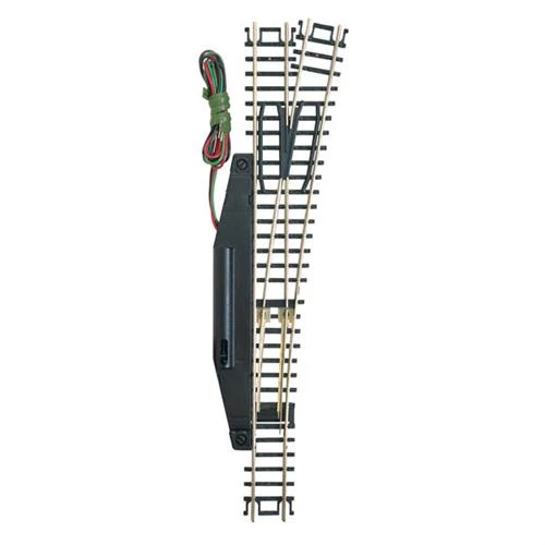 These switches have a remote control switch machine attached so you can wire the switch to be “thrown” (changing the direction of the rail), from your control panel rather than from the switch itself.