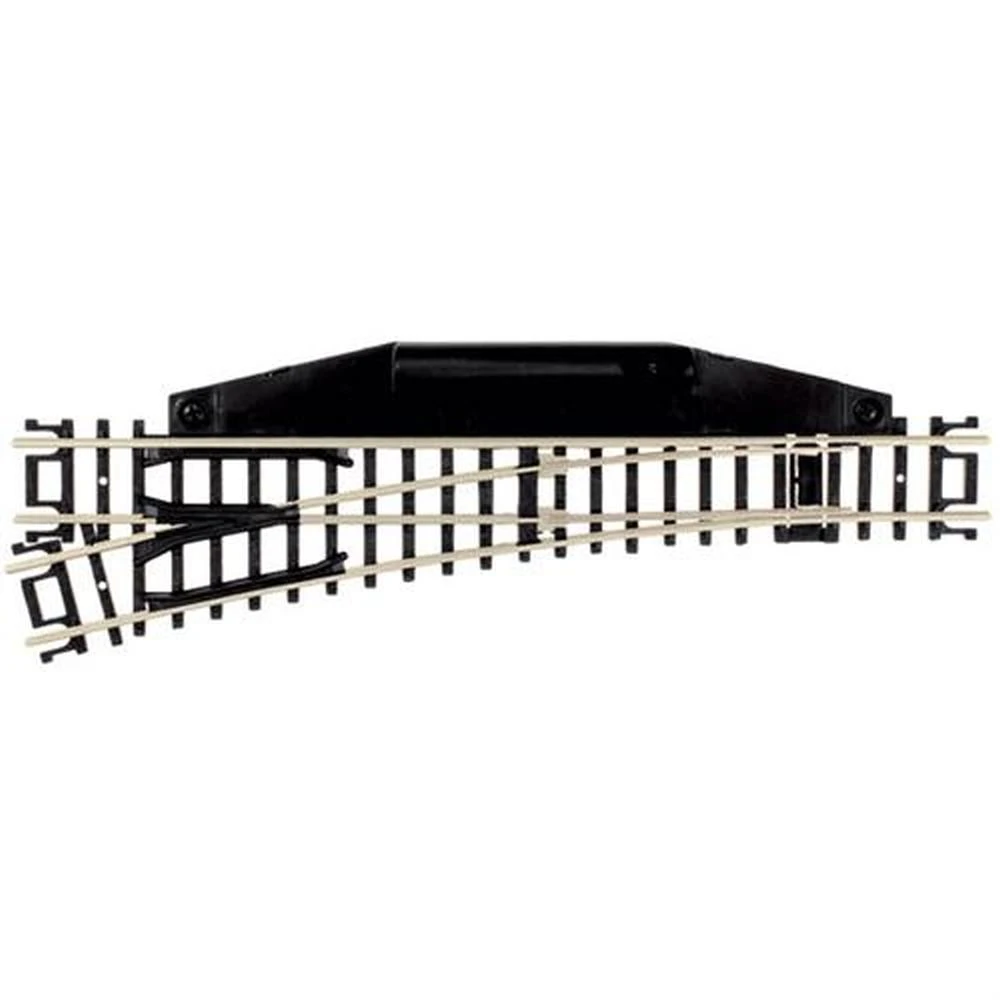 Manual switches can only be “thrown” (changing the direction of the rail) by flipping a lever on the switch by hand. These standard N scale manual switches can easily be converted to remote control with #2715 (lefthand) and #2716 (righthand) switch machines. Comes with one piece of 19″ radius track.