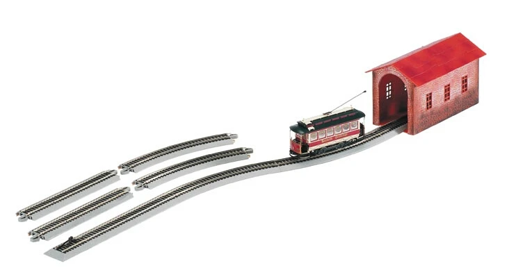 Featuring our electronic auto-reversing E-Z Track庐, the Village Street Car Set is the perfect solution for point-to-point passenger transit on your layout. A stop time of five to seven seconds allows plenty of time for O scale shoppers and Christmas villagers to board, and a variable speed controller lets you determine the rate of travel. Then, sit back and enjoy the ride while your town or city comes to life!