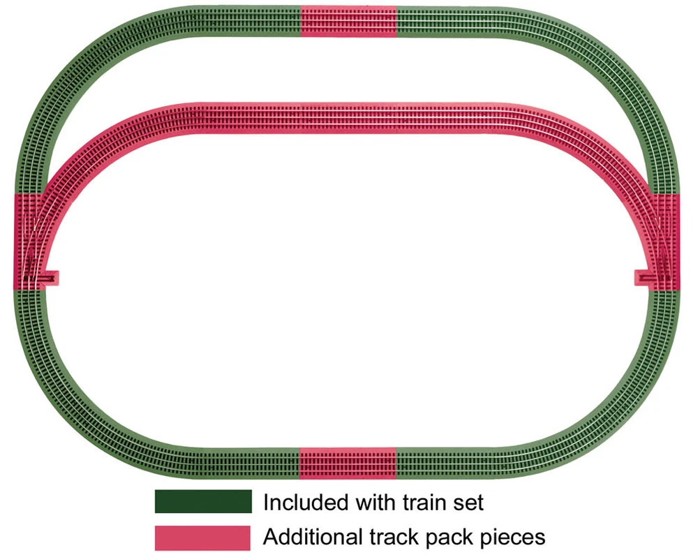 Dimensions: Layout: 49 1/2? x 70 1/2? Additional track required: