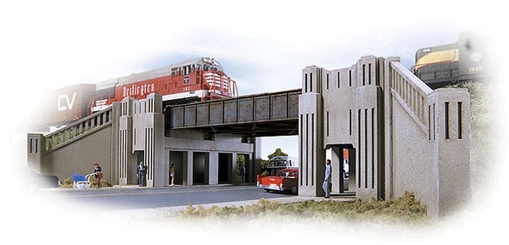 The Art Deco Highway Underpass is a unique Cornerstone structure kit that adds a dash of panache to post-1930s era highway scenes. Built stock it’s perfect for busy two track lines, but can be assembled for a single track line, or combined with a second kit to handle three or more tracks. Track spacing is also easily adjusted to NTrak and other modular layout standards. This easy-to-build kit comes with parts molded in appropriate colors and includes realistic decals.