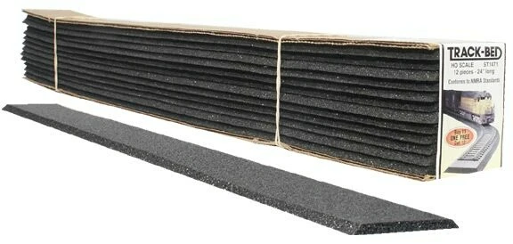 This roadbed product provides a quiet, smooth train operation and absorbs irregularities on your layout. It gives you a high-quality, economical alternative to other roadbeds. Track-Bed requires no pre-soaking like cork, remains flexible and won?t dry out or become brittle. It aligns well with cork on any layout and is available in Rolls, Strips, Sheets and Super Sheets. For an almost seamless application, use the 24-foot Rolls. All Track-Bed comes in N, HO and O scale.